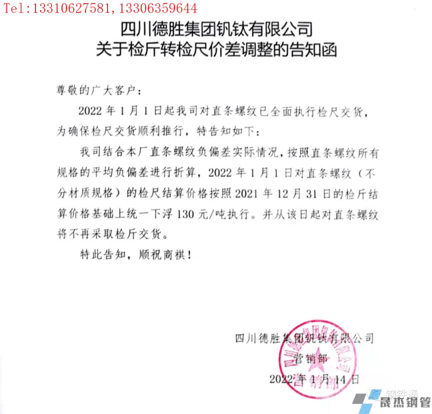 免責聲明:本網站(山東聊城晟杰無縫鋼管廠m.ahcom.com.cn)刊載的“四川多家鋼企發布檢斤轉檢尺價差調整通知”等均源于網絡,版權歸原作者所有,且僅代表原作者觀點,本文所載信息僅供參考。轉載僅為學習與交流之目的,如無意中侵犯您的合法權益,請及時聯系刪除。本網站刊登此篇文章并不意味著本站贊同其觀點或證實其內容的真實性,我們不對其科學性、嚴肅性等作任何形式的保證。如果侵犯了您的版權,請盡快聯系我們予以撤銷,謝謝合作!