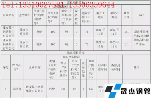 遷安軋一鋼鐵集團有限公司擬于2021年12月在遷安市蔡園鎮開工建設電爐100t電爐2座,產能150萬噸/年;所有項目擬于2023年11月投產。同時,遷安軋一鋼鐵集團有限公司退出160t轉爐1座,產能150萬噸/年,將于新建項目投產前拆除。