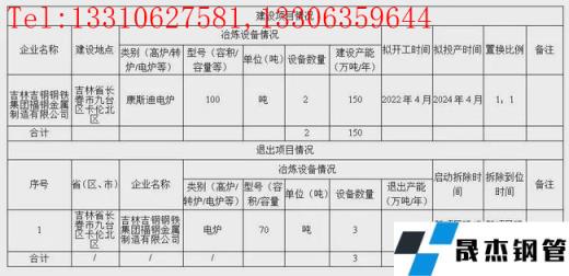 12月23日,吉林省工信廳發布2家鋼企產能置換方案公告。預計新增煉鋼產能200萬噸,退出產能200萬噸,詳情如下: