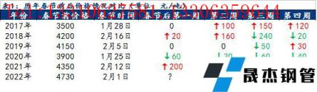 截至1月25日,貴陽市場主流建筑鋼材價(jià)格4730元/噸,較2021年春節(jié)前價(jià)格高出380元/噸,幅度達(dá)8.7%,為近年來春節(jié)前最高水平。2021年國慶之后,在國家宏觀調(diào)控下,原燃料價(jià)格幾近腰斬,帶動(dòng)鋼價(jià)走弱,疊加房地產(chǎn)不斷暴雷,需求不及預(yù)期,短短半個(gè)月時(shí)間貴陽建材價(jià)格下跌近1300元/噸,跌幅達(dá)22.4%,隨后在金融、基建、冬奧會(huì)等利好刺激下逐步修復(fù),春節(jié)前鋼材價(jià)格持續(xù)偏強(qiáng),而全國限產(chǎn)不斷,本地電爐企業(yè)于12月初基本停產(chǎn)減產(chǎn),供應(yīng)端壓力較小,全國庫存處于較低位置,冬儲(chǔ)政策不及預(yù)期,大部分無縫鋼管廠無冬儲(chǔ)政策,僅資金政策給與貿(mào)易商,商家普遍冬儲(chǔ)意愿較差,節(jié)前無縫鋼管廠拉漲更是讓貿(mào)易商對(duì)節(jié)后價(jià)格不容樂觀,同時(shí)終端抵觸高價(jià)情緒愈發(fā)強(qiáng)烈,整體觀望情緒較濃。據(jù)歷史數(shù)據(jù)來看,2017年以來,除去2020年受全球公共突發(fā)事件影響鋼價(jià)持續(xù)走弱,其余年份春節(jié)后貴陽建筑鋼材價(jià)格前兩周上漲的概率達(dá)50%,前兩周下跌概率為0;春節(jié)后前三周上漲概率達(dá)50%,前三周下跌概率達(dá)50%;春節(jié)后前四周上漲概率達(dá)50%,下跌概率達(dá)25%。整體來看,節(jié)后鋼價(jià)偏強(qiáng)運(yùn)行概率較大。