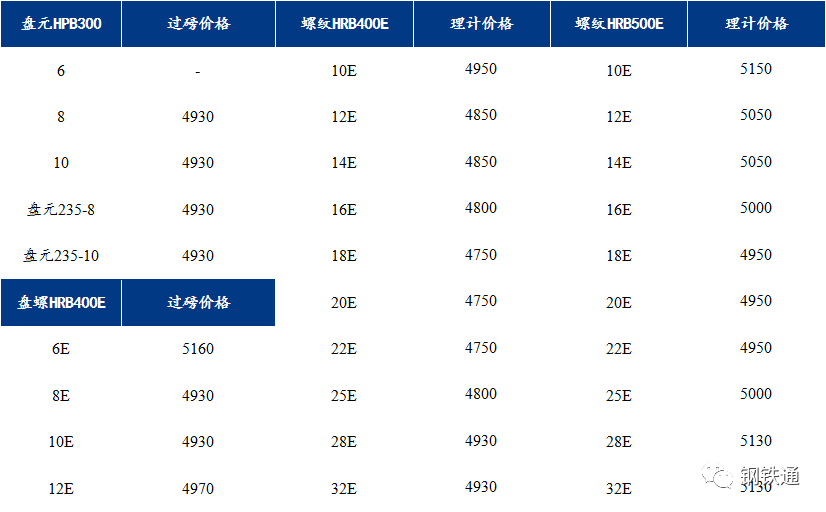 2、盤螺平穩(wěn):HRB400EΦ8-10mm盤螺指導(dǎo)價格為4940元,6mm加價500元/噸;