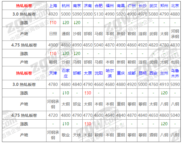 全國24個(gè)主要市場3.0 熱軋板卷平均價(jià)格4915元/噸,較上個(gè)交易日下調(diào)7元/噸。