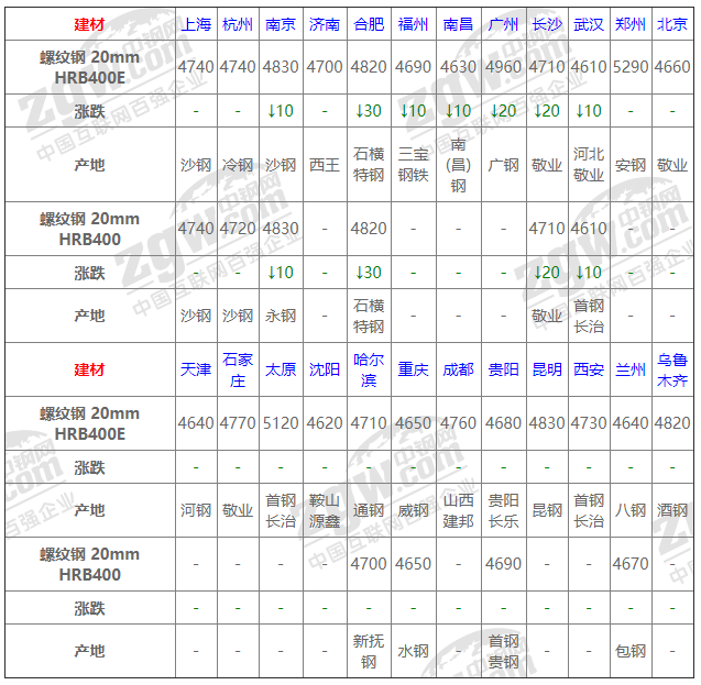 全國24個(gè)主要市場螺紋鋼 20mm HRB400E平均價(jià)格4765元/噸,較上個(gè)交易日下調(diào)5元/噸。