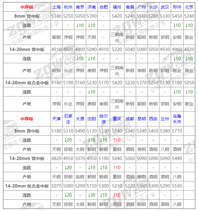 1月18日中厚板價(jià)格:主跌10;