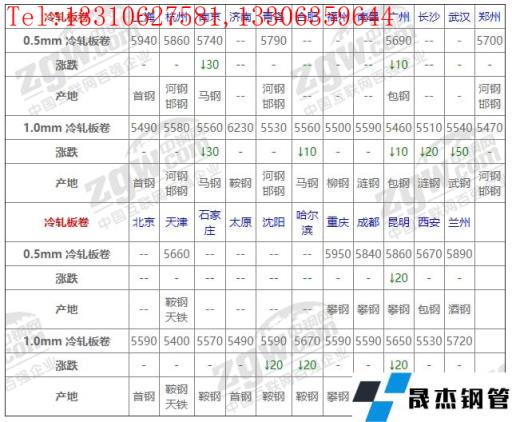 全國23個主要市場1.0mm 冷軋板卷平均價(jià)格5583元/噸,較上個交易日下調(diào)9元/噸。