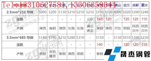 全國12個主要市場2.5mm*232 帶鋼平均價格5167元/噸,較上個交易日上調7元/噸。