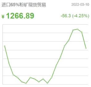 3月11日,根據(jù)今日鐵礦的消息來看,本周進(jìn)口鐵礦石價(jià)格整體下跌,而國產(chǎn)鐵礦價(jià)格走勢(shì)良好。分類別來看,進(jìn)口65%粉礦現(xiàn)貨貿(mào)易價(jià)格1266.89元/噸,較前一個(gè)交易日下跌56.3,跌幅4.25%;進(jìn)口65%粉礦到岸價(jià)格186.69美元/噸,較前一個(gè)交易日下跌2.26,跌幅1.2%;國產(chǎn)65鐵精礦漲0.91收于1057.58元/噸,漲幅0.09%;國產(chǎn)62%鐵精礦漲0.75收于944.37元/噸,漲幅0.08%。