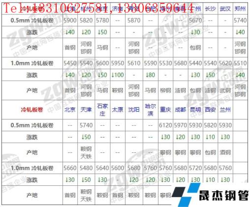 全國23個主要市場1.0mm 冷軋板卷平均價格5630元/噸,較上個交易日下調38元/噸。