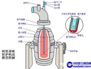 原料:1.鐵水(80%-85%):用封閉保溫的魚雷罐車從煉鐵廠運來(以前用敞口鐵水罐);2.廢鋼(15%-20%):事先破碎不攙雜質異物。