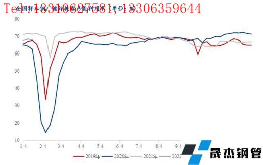 圖2:全國樣本無縫鋼管廠鍍鋅板卷產能利用率