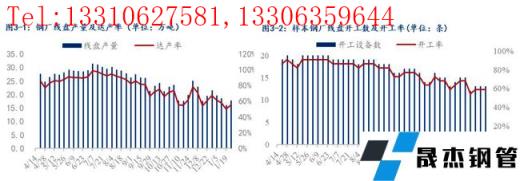 盤線方面,本周東北地區樣本無縫鋼管廠家線盤產量累計17.6萬噸,環比上周增加1.7萬噸;達產率55%,環比上周上升5%;設備開工率59%,較上周上持平。