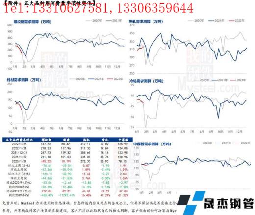 本周五大品種周消費量降幅突出,主要原因在于建材品種庫存增幅突出,但供應減量有限;而板材品種供應和庫存均未有明顯變化,因此整體消費受建材品種影響出現大幅下降。從下游消費來看,節前最后一周,全國大面積雨雪天氣來襲,以及員工停休放假,需求基本停滯。