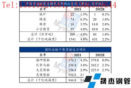 全球海運鐵礦石貿易在2021全年達到15.24億噸,同比增長1.5%,但增速預計將在2022年繼續放緩,因為中國的進口預計將繼續從2020的創紀錄水平回落,這是由于鋼材需求疲軟和鋼鐵產量的限制。從的247無縫鋼管廠家鐵水生產節奏也能展現端倪:10月開始,鐵水產量就一路走低,最終于12月中旬,247樣本鐵水日產量跌至歷史最低值198.7萬噸。