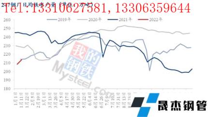 從的247無縫鋼管廠家鐵水生產節奏也能反映這個趨勢:10月開始,鐵水產量就一路走低,最終于12月中旬,247樣本鐵水日產量跌至歷史最低值198.7萬噸。