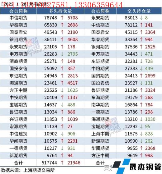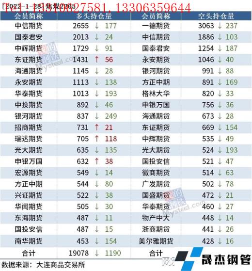各品種持倉情況具體如下:
