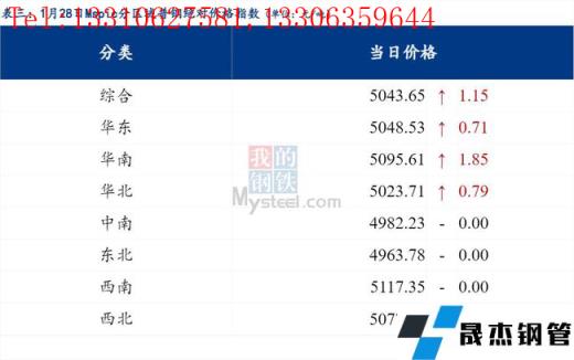 1月28日普鋼絕對價格指數(shù)變化:綜合指數(shù)5043.65,上漲1.15;螺紋鋼指數(shù)4822.08,持平0.0;線材指數(shù)5154.47,持平0.0;熱軋板卷指數(shù)4902.32,上漲1.19;冷軋板卷指數(shù)5399.03,持平0.0;中厚板指數(shù)5042.38,上漲0.13。