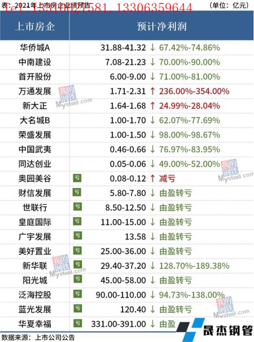 免責聲明:本網站(山東聊城晟杰無縫鋼管廠m.ahcom.com.cn)刊載的“20家房企發布2021年業績預告,過半出現虧損”等均源于網絡,版權歸原作者所有,且僅代表原作者觀點,本文所載信息僅供參考。轉載僅為學習與交流之目的,如無意中侵犯您的合法權益,請及時聯系刪除。本網站刊登此篇文章并不意味著本站贊同其觀點或證實其內容的真實性,我們不對其科學性、嚴肅性等作任何形式的保證。如果侵犯了您的版權,請盡快聯系我們予以撤銷,謝謝合作!