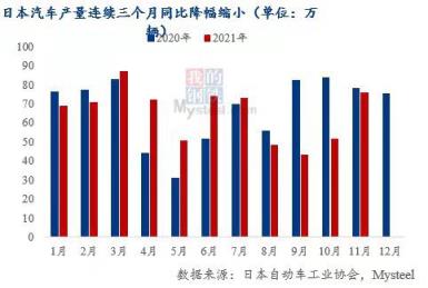 2021年11月日本汽車產量76萬輛,環比增長47%,截至2021年11月,日本汽車產量同比降幅連續三個月收窄;韓國2021年12月汽車產量32萬輛,環比增長5%,同比增長7%,是近四個月首次實現同比增長。