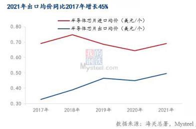 但中國芯片行業與歐美日相比存在較大差距,高端芯片高度依賴進口。據海關總署數據,我國2017年進口均價為0.69美元/個,出口均價為0.34美元/個,2021年進口均價為0.7美元/個,出口均價為0.5美元/個。從這個數據來看我國仍維持進口高端芯片,出口中低端芯片的過程。但2021年出口均價同比2017年增長44.71%,說明我國的半導體逐漸往高端芯片的生產靠近。國務院數據顯示,我國芯片自給率要在2025年達到70%,難度很大,“中國芯”道阻且艱。