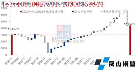 截至2021年1月21日,據(jù)調(diào)研統(tǒng)計,到2022年底總焦化產(chǎn)能預(yù)計將達到5.54億噸/年,將高于2021年底的5.4億噸/年,年增幅2.9%。