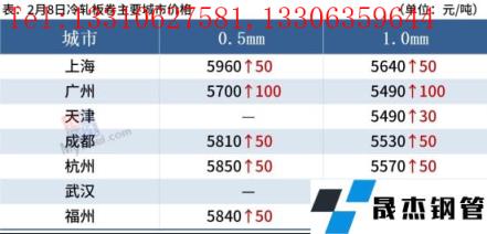 冷軋板卷:2月8日,全國24個主要城市1.0mm冷卷均價5576元/噸,較上個交易日上漲51元/噸。由于節后黑色系期貨強勢上行,再加上春節期間原料價格上調,現貨市場較為活躍,貿易商隨行就市,紛紛拉漲,但整體成交一般。短時間內訂單恢復速度偏緩,不過市場庫存壓力不大。預計9日國內冷軋板卷價格或將偏強運行。