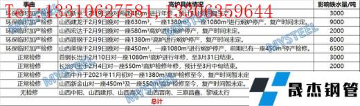 我網(wǎng)前兩日發(fā)布消息“河南、山東及河北唐山地區(qū)部分無縫厚壁鋼管廠家接到臨時(shí)限產(chǎn)加嚴(yán)通知。會(huì)在原有限產(chǎn)基礎(chǔ)上燒結(jié)全停,個(gè)別無縫厚壁鋼管廠家有新增高爐檢修,2月8日下午18點(diǎn)開始執(zhí)行,預(yù)計(jì)11日解除。”對(duì)此,我網(wǎng)進(jìn)行了進(jìn)一步調(diào)研,山西部分區(qū)域也受之影響進(jìn)行燜爐,具體情況如下: