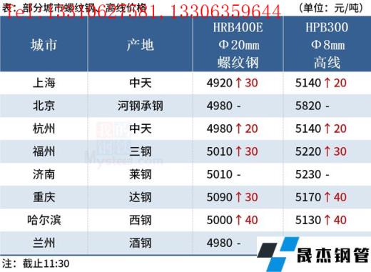 ◎杭州:11日早盤杭州優特鋼市場價格部分漲20。現45#Φ30以上主流價格杭5470淮5470南5460,元立(直發)5450中天5460東方5400,40Cr杭5680淮5730;齒輪萊鋼5900,鉻鉬建龍6030淮鋼6080。(單位:元/噸)