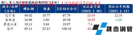 本周為春節(jié)后第二周,東三省建筑厚壁無(wú)縫鋼管現(xiàn)貨庫(kù)存整體較春節(jié)前最后一周增加40.52萬(wàn)噸,其中螺紋鋼現(xiàn)貨庫(kù)存85.13萬(wàn)噸,線(xiàn)盤(pán)23.21萬(wàn)噸,建材社會(huì)庫(kù)存總量為108.34萬(wàn)噸,較上周增40.52萬(wàn)噸,增幅高達(dá)37.40%。據(jù)悉春節(jié)期間各市場(chǎng)到貨較多,尤其以沈陽(yáng)和長(zhǎng)春市場(chǎng)累庫(kù)最為明顯,主要是西鋼、新?lián)徜摗⑿蛮i輝和四平等廠(chǎng)庫(kù)陸續(xù)前移至市場(chǎng)。