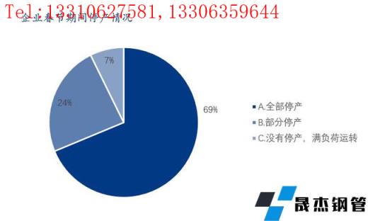 本次調研樣本企業中春節期間全部停產的占比69%;部分停產的占比24%;沒有停產且滿負荷運轉的企業占比7%。