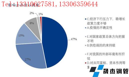 本次調研樣本企業認為影響企業信心的因素如下表:47%認為經濟下行壓力大,穩增長政策力度不夠;27%認為疫情不確定性;15%認為對國家政策總體方向把握不明;8%認為是供給端的約束持續,另有3%擔憂外部環境和對重大問題認識不清。