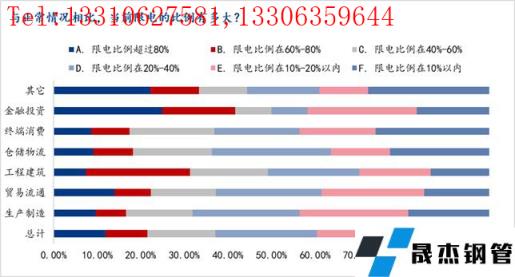 根據(jù)690余家企業(yè)反饋的限電比例情況,多數(shù)企業(yè)限電在20%-40%和10%-20%區(qū)間,占比分別為23.31%和22.30%,限電比例低于20%的企業(yè)約40%,而限電較為嚴(yán)重、比例超過(guò)60%的企業(yè)占20%水平。各行業(yè)限電比例分布差異不是特別大。