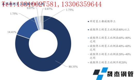 春節期間所有員工都放假停工的企業占調研樣本83.64%,同時有1.75%的企業放假停工的員工比例不到20%。