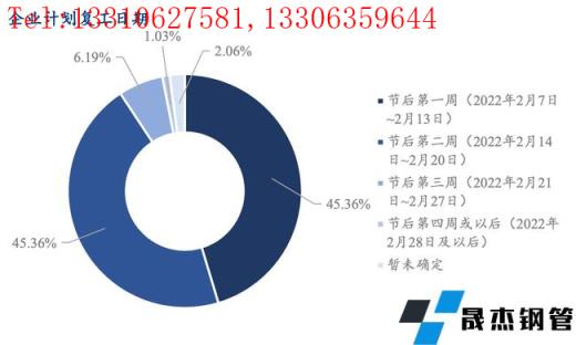 調研樣本中45.36%的企業在節后第一周復工,45.36%的樣本在節后第二周復工,還有1.03%的企業尚未確定復工時間。