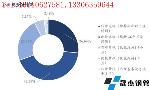 調研企業現金流情況整體尚可,26.64%的企業表示非常充裕,42.79%的企業表示比較充裕,30.57%的企業表示資金存在緊張問題。