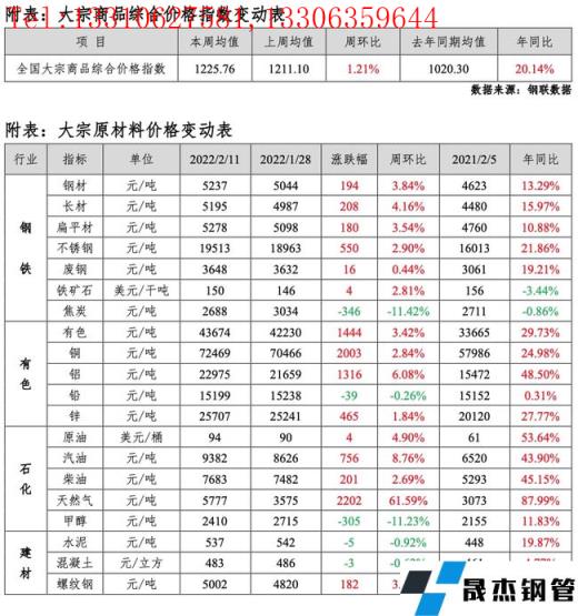 全國大宗商品綜合價格指數(shù)均值為1225.76,環(huán)比上升,增幅1.21%(前值4.28%);同比上升,增幅20.14%(前值19.01%)。