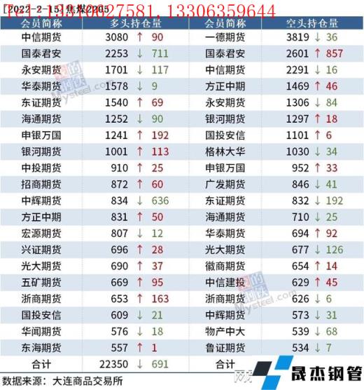截至2月15日收盤,螺紋鋼2205收4728元/噸,跌2.76%;熱卷2205收4843元/噸,跌2.69%;鐵礦石2205收699元/噸,跌9.98%。