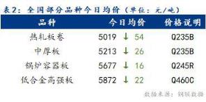 今日全國部分品種均價表現較弱,整體跌幅為16~54元/噸。