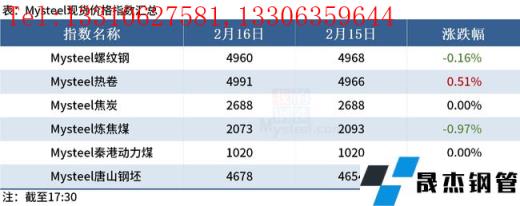 ◎ 國(guó)家統(tǒng)計(jì)局:1月煤炭、厚壁無縫鋼管等行業(yè)價(jià)格走低,帶動(dòng)工業(yè)品價(jià)格整體繼續(xù)回落。詳情>>