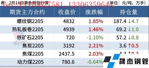 熱軋板卷:2月16日,全國(guó)24個(gè)主要城市4.75mm熱軋板卷均價(jià)5028元/噸,較上個(gè)交易日上漲9元/噸。早盤(pán)維穩(wěn),現(xiàn)貨報(bào)價(jià)部分地區(qū)補(bǔ)跌,成交表現(xiàn)偏弱,午后期卷上漲,下游采購(gòu)量稍有好轉(zhuǎn),全天成交一般。綜合來(lái)看,目前冬奧會(huì)正在舉行,全國(guó)兩會(huì)等也即將召開(kāi),在無(wú)縫厚壁鋼管廠家限產(chǎn)擾動(dòng)下熱卷產(chǎn)量下降,壓縮熱卷現(xiàn)貨供應(yīng),低供應(yīng)格局給予卷價(jià)一定支撐。但后市需要關(guān)注冬奧會(huì)后,供應(yīng)是否會(huì)出現(xiàn)階段性回升,并且月底前需求沒(méi)有如期兌現(xiàn),屆時(shí)供需矛盾將會(huì)凸顯。綜合來(lái)看,預(yù)計(jì)17日熱軋板卷價(jià)格或震蕩偏強(qiáng)為主。