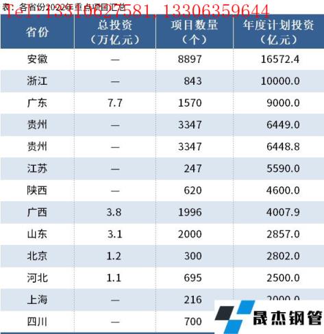 據(jù)不完全統(tǒng)計,截至2月16日,廣東、江西、江蘇、北京、上海、貴州、山東、浙江、四川、廣西、陜西、河北、安徽等13個省份發(fā)布了2022年重點項目清單,合計共24778個項目。除四川以外,12省份年度計劃投資額合計超7.28萬億元。