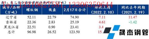 本周各主流城市分倉庫來看,本周沈陽市場幾大主流倉庫增庫節奏明顯放緩,到貨不多;大連市場到貨節奏也一般、累庫較少;吉林省內長春兩大主流倉庫現貨庫存也在增加。從無縫厚壁鋼管廠家產量及庫存來看,本周區域內樣本無縫厚壁鋼管廠家總產量50萬噸,較上周回升2.3萬噸;廠庫總量13.05萬噸,較上周下降1.14萬噸,社庫則繼續增了15.16萬噸,目前區域內主導無縫厚壁鋼管廠家生產節奏與上周相比產量略有回升,廠庫繼續前移至市場因此繼續減少,本周雖然已經過了元宵節,但下游終端啟動情況仍不理想,需求不佳,整體出貨較差,在需求緩慢啟動的過程中,預計現貨庫存仍將繼續累庫。
