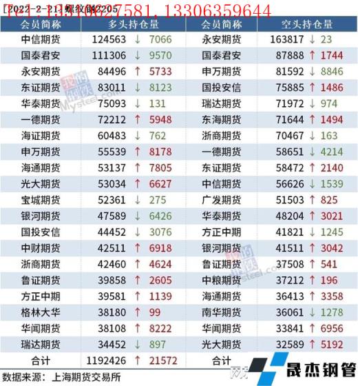 截至2月21日收盤,螺紋鋼2205收4845元/噸,漲2.43%;熱卷2205收4959元/噸,漲2.04%;鐵礦石2205收707元/噸,漲4.74%。