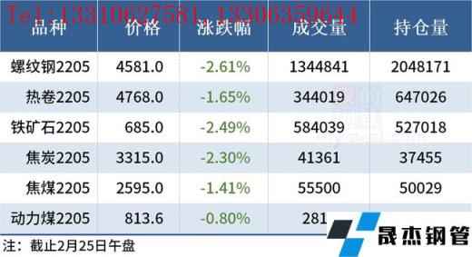 免責聲明:本網站(山東聊城晟杰無縫鋼管廠m.ahcom.com.cn)刊載的“2022年02月25日午報:鋼價普遍下跌,黑色期貨全線飄綠”等均源于網絡,版權歸原作者所有,且僅代表原作者觀點,本文所載信息僅供參考。轉載僅為學習與交流之目的,如無意中侵犯您的合法權益,請及時聯系刪除。本網站刊登此篇文章并不意味著本站贊同其觀點或證實其內容的真實性,我們不對其科學性、嚴肅性等作任何形式的保證。如果侵犯了您的版權,請盡快聯系我們予以撤銷,謝謝合作!