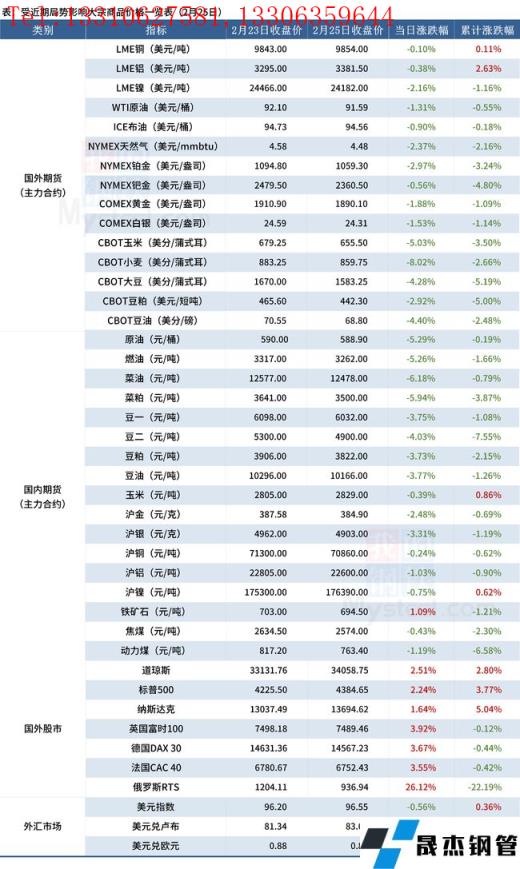 免責聲明:本網站(山東聊城晟杰無縫鋼管廠m.ahcom.com.cn)刊載的“受近期局勢影響大宗商品價格一覽表(2月25日)”等均源于網絡,版權歸原作者所有,且僅代表原作者觀點,本文所載信息僅供參考。轉載僅為學習與交流之目的,如無意中侵犯您的合法權益,請及時聯系刪除。本網站刊登此篇文章并不意味著本站贊同其觀點或證實其內容的真實性,我們不對其科學性、嚴肅性等作任何形式的保證。如果侵犯了您的版權,請盡快聯系我們予以撤銷,謝謝合作!