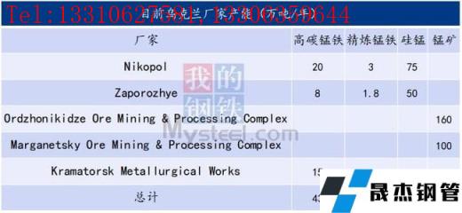 鐵合金企業(yè):Nikopol是烏克蘭最大的一家鐵合金生產商,而第二Zaporozhye Ferroalloy Plant 擁有80多年的歷史,產量占烏克蘭的30-35%,占全球鐵合金產量的1-2%。Zaporozhye擁有29臺電弧爐,2臺直流電爐。出口國家有俄羅斯、白俄羅斯、哈薩克斯坦、歐盟國家以及土耳其、埃及、日本、韓國等。