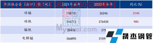 據(jù)統(tǒng)計,2021年國內硅錳、硅鐵、錳鐵、電解錳合金出口量均有不同程度的抬升,得益于2021年全球粗鋼產量的增加,(19.505億噸,同比提高3.7%)。
