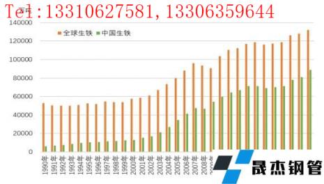 1990年-2020年全球和中國煉鋼生鐵產量走勢圖