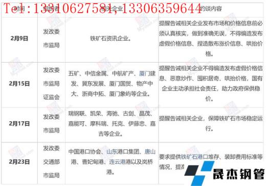 2022年2月份針對鐵礦石價格約談情況表