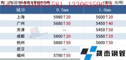 冷軋板卷:3月1日,全國24個(gè)主要城市1.0mm冷卷均價(jià)5572元/噸,較上個(gè)交易日上漲27元/噸。今日黑色系期貨市場大幅拉漲,現(xiàn)貨市場大幅跟漲,市場成交放量明顯,統(tǒng)計(jì)數(shù)據(jù)顯示,全國冷軋板卷市場出貨量為33044噸,較上個(gè)交易日增加3824噸,增幅13.09%。綜合來看,預(yù)計(jì)2日全國冷軋價(jià)格有望窄幅上調(diào)。