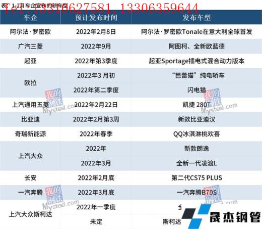 免責聲明:本網站(山東聊城晟杰無縫鋼管廠m.ahcom.com.cn)刊載的“1-2月19家車企發布新車型規劃”等均源于網絡,版權歸原作者所有,且僅代表原作者觀點,本文所載信息僅供參考。轉載僅為學習與交流之目的,如無意中侵犯您的合法權益,請及時聯系刪除。本網站刊登此篇文章并不意味著本站贊同其觀點或證實其內容的真實性,我們不對其科學性、嚴肅性等作任何形式的保證。如果侵犯了您的版權,請盡快聯系我們予以撤銷,謝謝合作!